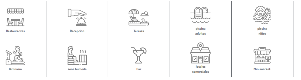 - Desayuno, almuerzo y cena tipo buffet.